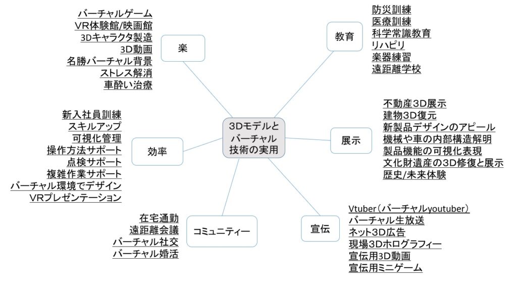 ウェブサイトやアプリにバーチャル技術を加入して分かりやすく面白くする。商品、不動産や劇場の紹介と公式サイトによく使う。